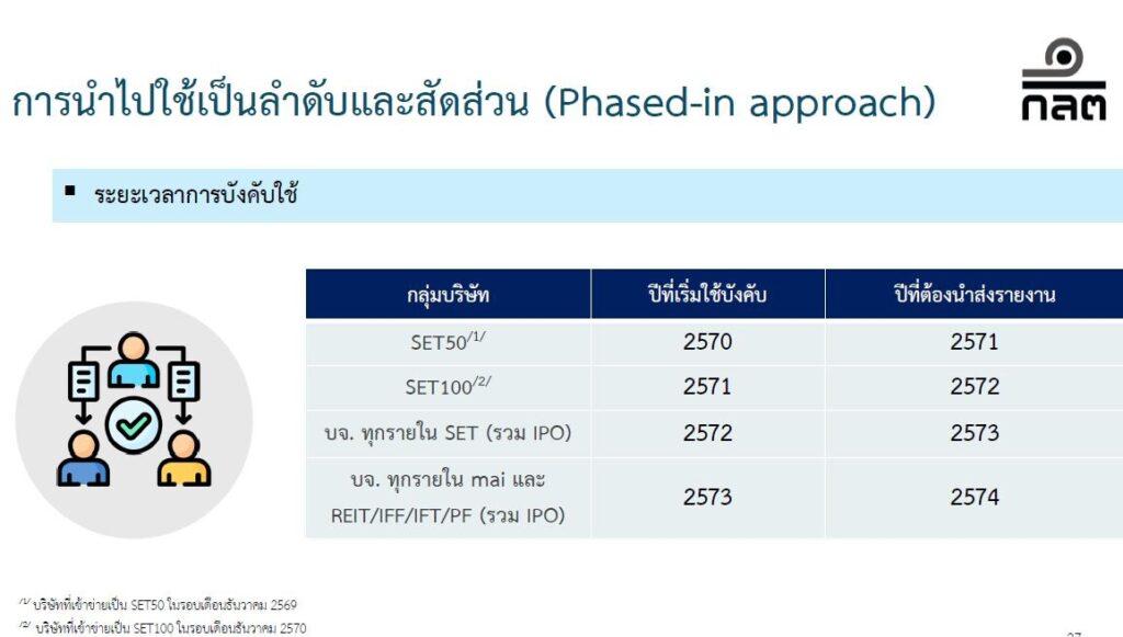 เริ่มบังคับใช้ในปี 2570 ในกลุ่ม SET50 เป็นกลุ่มแรก